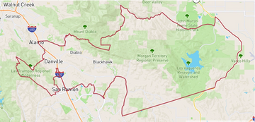 Danville is approximately 30 miles east of San Francisco and 40 miles north of Silicon Valley.